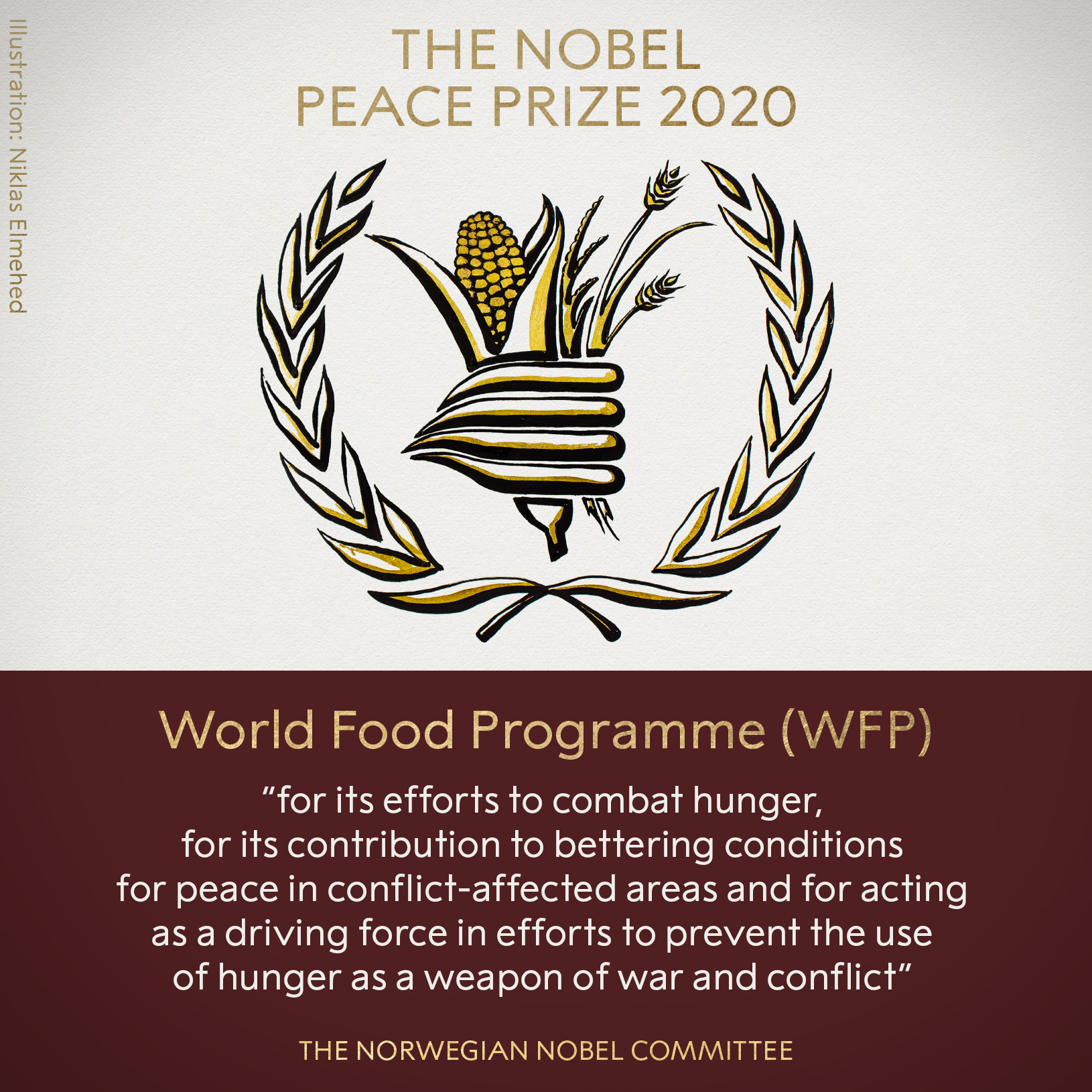 Hunger is a weapon of war but the World Food Programme cant build peace on its own October 9 2020 1248pm EDT Susanne Jaspars SOAS University of London. The Nobel Peace Prize was awarded to the World Food Programme on Friday for feeding millions of people from Yemen to North Korea with the coronavirus pandemic pushing millions more into hunger. Right now w World Food Programme wins Nobel Peace Prize 2020 for.